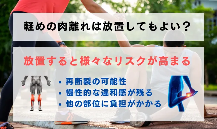 軽い肉離れは、放置するとたくさんの症状を引き起こす可能性があります。