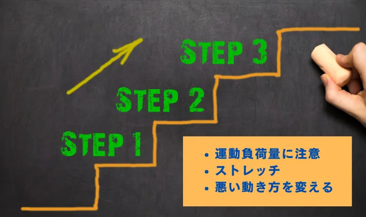 運動前後のストレッチを徹底し、負荷のかかりすぎを防ぎましょう。